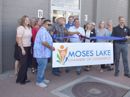 Chamber snips its own ribbon MOSES LAKE – State Rep. Alex Ybarra, flanked by Rep. Tom Dent and Boys and